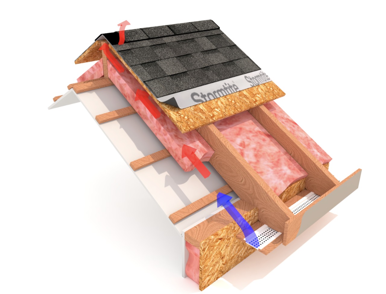 Primero, se debe colocar la duela o el acabado del techo que desee para el interior de su casa y sobre este se colocará el aislante térmico antes del triplay u OSB. Entre el aislante térmico y el triplay se debe dejar un espacio de una pulgada como ventilación. Estos dos factores al ser implementados mejoran la eficiencia energética, reduciendo en gran medida la transmisión de calor a las casas.
