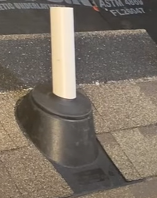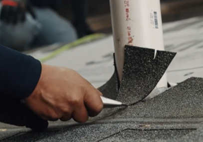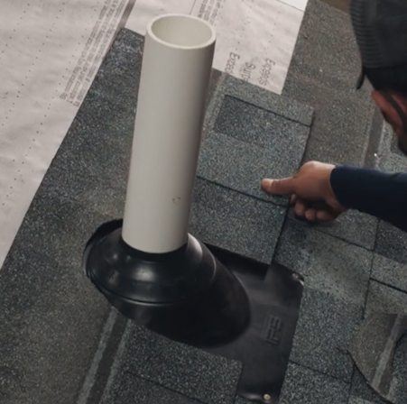 Empezamos la instalación recubriendo alrededor del tubo, primero con el fieltro sintético seguido de la teja asfáltica. Estas se deben de recortar a lo más aproximado a la tubería.