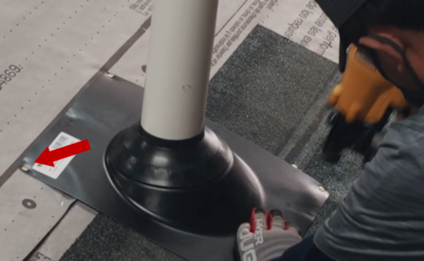 Es momento de colocar la segunda capa de teja asfáltica, la cual debe estar recortada para cubrir el rededor del tapajuntas de la tubería. Se fija por medio del cemento asfáltico entre estas dos capas, el tapajuntas y la teja superior.