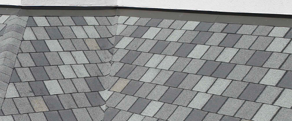 Para cubrir y sellar la limahoya, se instala una capa de recubrimiento STORMTITE de la marca IKO y un escudo de hielo y agua sobre él. Posteriormente, se instalan las tejas asfálticas, comenzando por la pendiente más baja y, más tarde, en la pendiente más alta para que se superpongan efectivamente entre sí. La parte sobrante delas tejas asfálticas en la pendiente más alta se corta para que la superposición parezca perfecta.