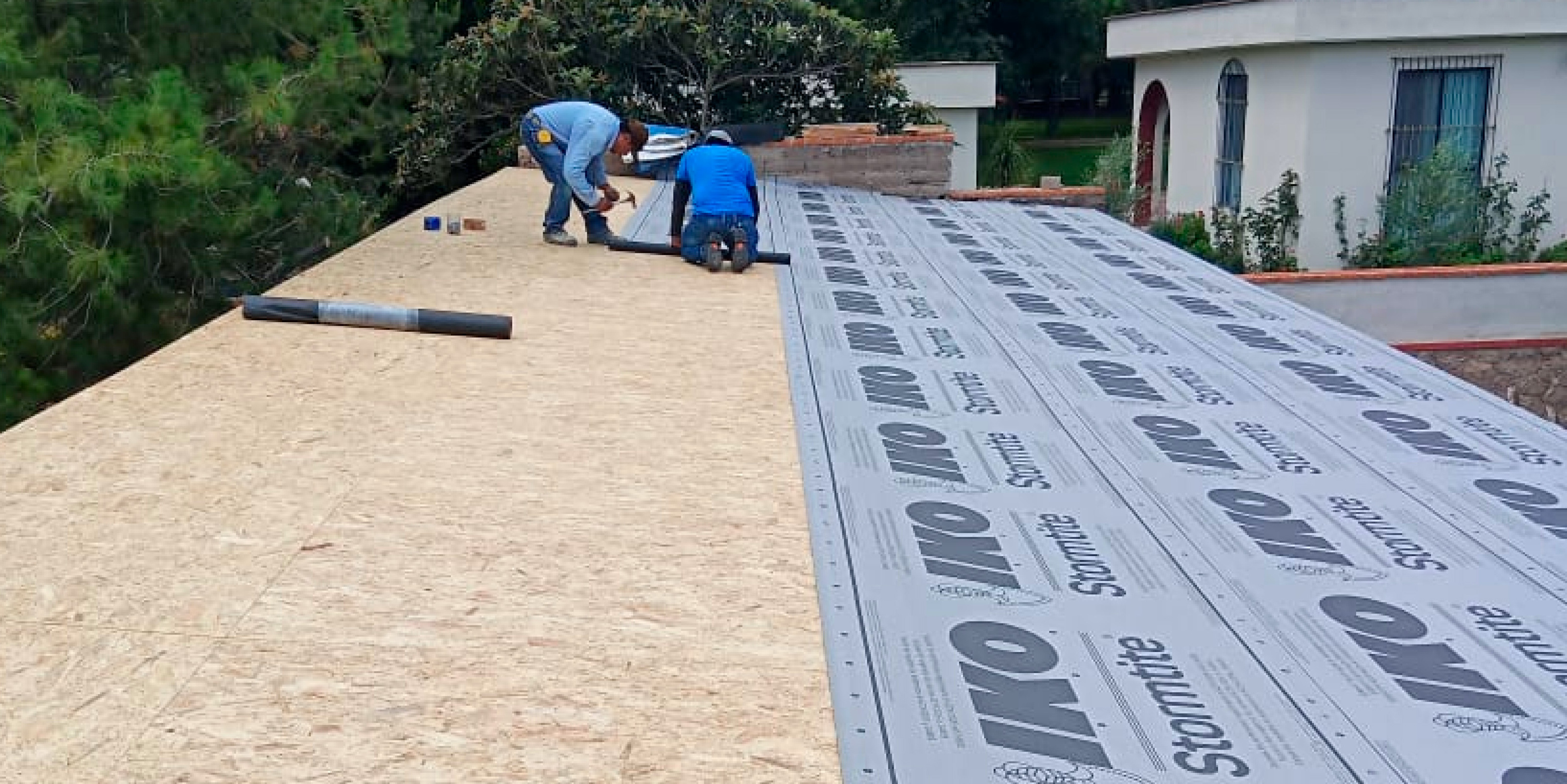 1- Recubrimiento Sintético Stormtite de IKO: el recubrimiento sintético IKO Stormtite se coloca en un techo de madera por debajo de las tejas asfálticas, ya que le dará una doble protección a su techo contra el agua y la humedad y con ello protegerla madera para su larga vida. Para techo de concreto no es necesario el recubrimiento.