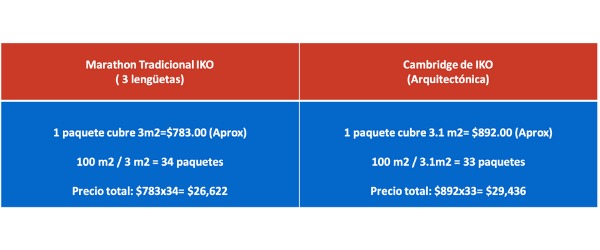 En general, es poca la diferencia entre los costos, las tejas asfálticas arquitectónicas pueden costar aproximadamente entre un 10% y un 15% más que las tejas asfálticas de 3 lengüetas y se consideran el estándar para las casas de alto nivel.